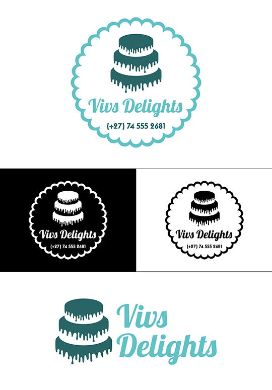 Viv's Delight Branding Viv's Delights is a small homemade baking business in my hometown. They make and decorate cakes for any and all occasion depending on what the customers request. Viv's Delights specialize in novelty birthday cakes. Besides cakes, they bake éclairs, cupcakes and many more smaller goodies apon request.